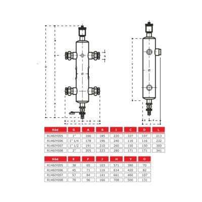 • GIACOMINI R146IY hidraulikus váltó szigeteléssel, 4 hollandival, ürítővel és légtelenítővel, 2.5m3/h, 45kW, 1"