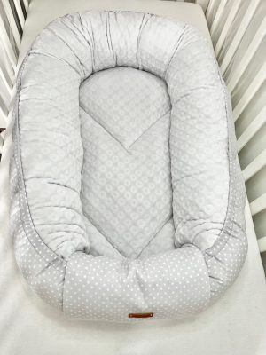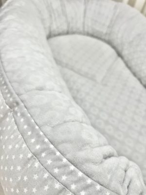 Glan – Babafészek újszülötteknek | Szürke-fehér csillagos pamut, szürke wellsoft