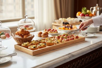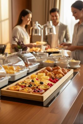 A természetes bambusz anyag meleg, prémium megjelenést biztosít, amely kontrasztot ad a rozsdamentes és porcelán elemek mellett. Ez különösen fontos modern vagy hotel szintű svédasztaloknál.