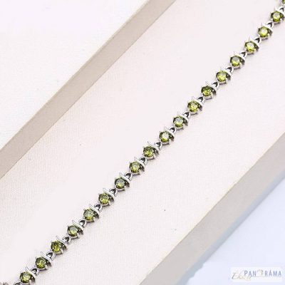 White Gold Filled ródiumos karkötő oliva zöld czirkónia kristályokkal díszített. Antiallergén, nikkel mentes, allergiások is viselhetik.