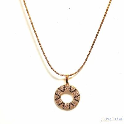 Gyönyörű Gold Filled nyaklánc, kör alakú, tűkristállyal díszített medállal.