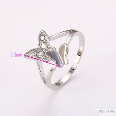 Antiallergén Gold Filled ródiumos gyűrű gyönyörűen csillogó fehér kristályokkal és egy kis pillangó betéttel!