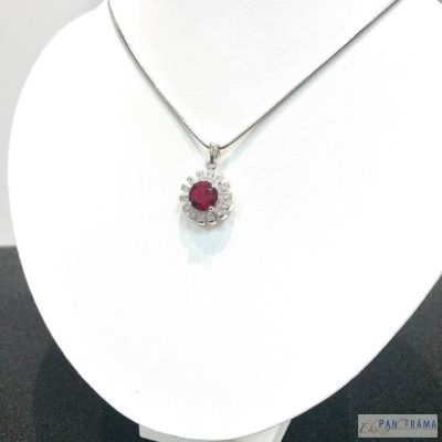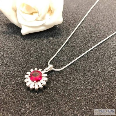 Visszafogottan elegáns, finom darab, amely piros köves medállal van kiegészítve! Remek kiegészítője lehet öltözékünknek.