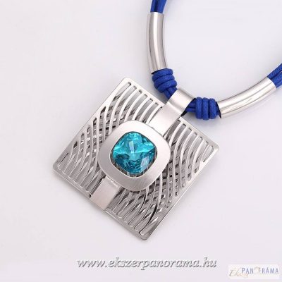 White Gold Filled antiallergén, nikkel mentes, ródiumos fülbevaló, zsinóros lánccal és medállal, szettben. Az ékszert gyönyörű kék kristály díszíti.