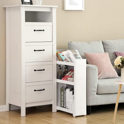 Tartós keskeny tároló: A robusztus PP műanyag tartóssá teszi a tárolóállványt az elkövetkező években. A 17 cm széles kocsi elfér a fürdőszobában, a konyhában, a hálószobában és a nappaliban.