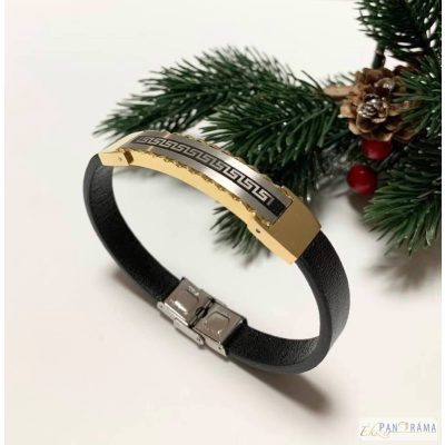 • Görög mintás férfi nemesacél kaucsuk karkötő - Josef