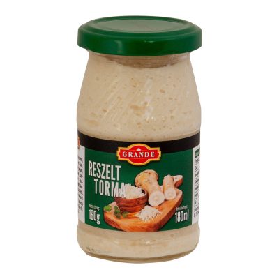 reszelt torma 60%, ivóvíz, repceolaj, ételecet, cukor, étkezési só, sűrítőanyagok (guargumi, xantángumi), savanyúságot szabályozó anyag (citromsav),