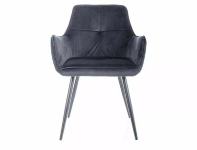 A Grape Velvet étkezőszék a modern otthonok tökéletes kiegészítője. A puha, fekete bársony kárpitozás és a matt fekete fém váz harmonikus kombinációja egyedi megjelenést kölcsönöz a széknek. A karfás kialakítás és az ergonomikus ülőfelület maximális kényelmet biztosít, míg a karcsú, szögletes lábak stabilitást nyújtanak.