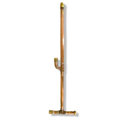 A fordított T forma egyik alsó 3/4"-es csatlakozója a bojler hőcserélőjének felső ágába csatlakozik, a másik pedig a kollektor felső kivezetésébe. Az U alakú töltőnyíláson töltheti fel a rendszert, az U alak feletti rész pedig a kiegyenlítő tartály szerepét tölti be.