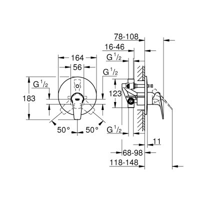 • GROHE BauFlow egykaros falba épített kádcsaptelep