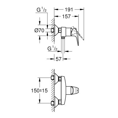 • GROHE BauFlow zuhanycsaptelep zuhanygarnitúra nélkül