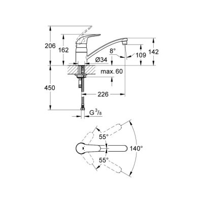 GROHE Euroeco álló mosogatócsaptelep alsó kifolyóval