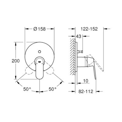 GROHE Eurosmart Cosmopolitan falba épített csaptelep SmartBoxhoz automata 2-utas vezérlővel