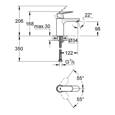 • GROHE Eurosmart Cosmopolitan M méretű mosdócsaptelep leeresztőgarnitúra nélkül