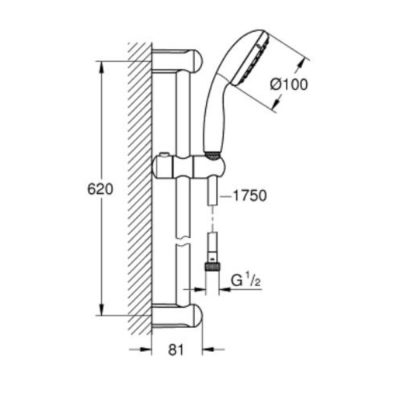 GROHE Tempesta 100 állítható zuhanyszett, 2 funkciós kézizuhannyal, 600mm-es zuhanyrúddal, 1750mm-es zuhanygégecsővel. DreamSpray tökéletes zuhanysugár, SpeedClean vízkőmentesíthető fúvókákkal.