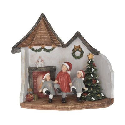 Téli jelenet táncoló gyerekek kandalló előtt, LED-es 24x10x22cm