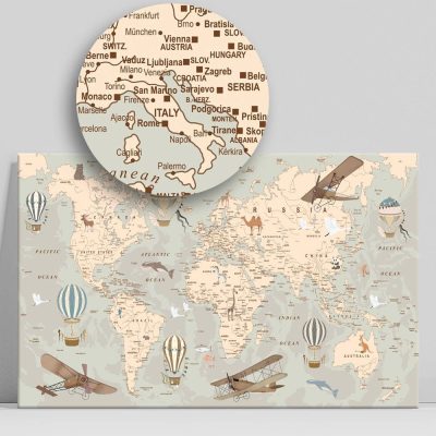 A Gyermek falitérkép világtérkép vászonból nem csupán egy dekoráció, hanem élmények, emlékek és jövőbeli álmok jelképe. Inspirálja a gyerekeket, emlékezteti a felnőtteket az utazások szépségére, és stílusos kiegészítője lehet minden otthonnak.