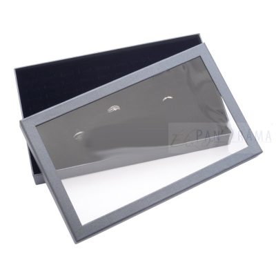 Gyűrűk, fülbevalók tárolására alkalmas doboz, átlátszó, vitrines tetővel.