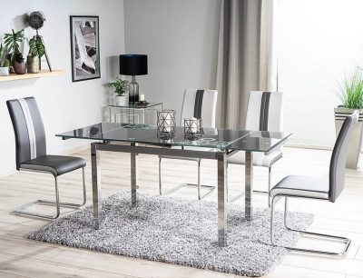 A H-200 étkezőszék egy modern és stílusos bútordarab, amely tökéletesen ötvözi a funkcionalitást és az esztétikumot. A szék szürke műbőr kárpitozással és kontrasztos világosszürke oldalsávval rendelkezik, ami egyedi megjelenést kölcsönöz neki. A krómozott szánkótalpas váz nem csak stabil tartást biztosít, de modern megjelenést is kölcsönöz a széknek. A magas háttámla és az ergonomikus kialakítás maximális kényelmet nyújt.