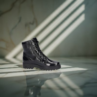 H-Serena lakbőr bélelet lakcsizma amely kivehető betéttel, légpárnás talppal rendelkezik. A kényelmet a fűző mellett az oldali cipzár biztosítja.