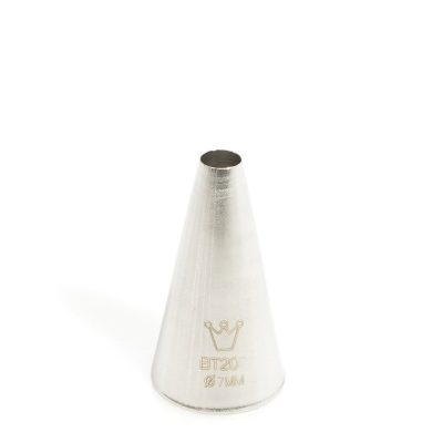 Habcső 7 mm, rozsdamentesRozsdamentes polirozott acél, kerek habcső, táskához vagy habzsákhoz, 2-24 mm-es kimeneti lyuk átmérővel.Torták, sütemények, kekszek habbal, krémmel való dekorálására használt eszköz.A névben szereplő átmérő a kimeneti nyílásra vonatkozik.Élelmiszerbiztonságos termék.Megfelelőségi nyilatkozattal rendelkező cukrászati termék.Olasz gyártású cukrászati eszköz.Termék méret: nagy átmérő 25 mm, magasság 50 mm.Első használat előtt alaposan mossa el.Mosogatógépben mosható.