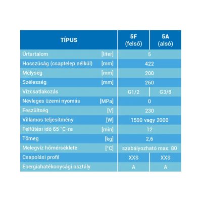 • HAJDU Aquastic 5A alsó elhelyezésű 5 literes villanybojler csapteleppel