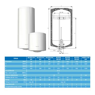 Az AQUASTIC (AQ ECO ErP) zártrendszerű forróvíztároló, fali függőleges elhelyezéssel, kivezetett hőfokszabályozós kivitel (amely lehetővé teszi a tartályban lévő víz hőmérsékletének beállítását), alacsony készenléti energia igénnyel.