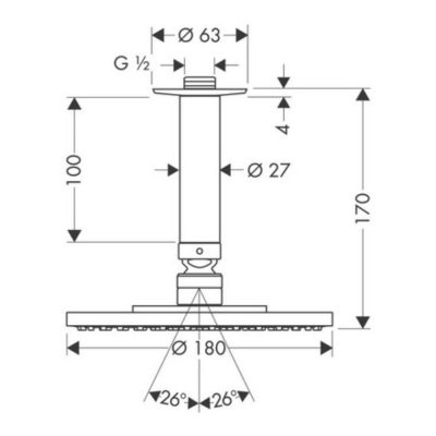 • HANSGROHE Raindance S 180 AIR fejzuhany mennyezeti csatlakozóval