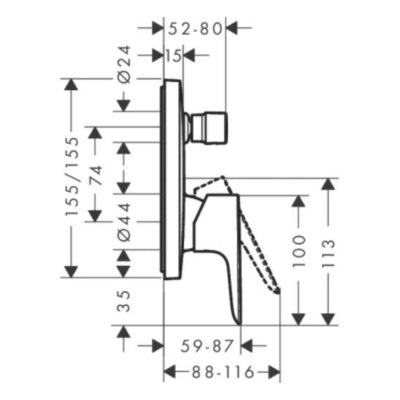 • HANSGROHE Talis E falsík alatti kádcsaptelep zuhanyváltóval látható rész