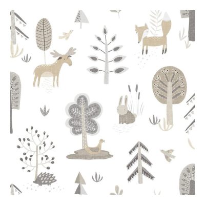 Happy - Erdő állatai fehér és szürke színű tapéta 14801