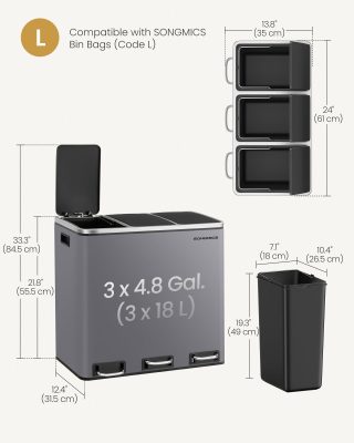 Formáld át a konyhai hulladékkezelési rutinodat ezzel az innovatív szeméttartóval, amely megkönnyíti a szelektív hulladék, a háztartási szemét és az ételmaradékok szétválasztását. Rozsdaálló acélból készült, így mindig tiszta marad minimális erőfeszítéssel. Élvezd a csendes, lágyan záródó fedelet és a modern dizájnt, amely bármely konyhához illik. A kéz nélküli pedál és a levehető belső vödrök higiénikus és egyszerű hulladékeltávolítást biztosítanak. Ráadásul praktikus szemeteszsákokat is tartalmaz, így azonnal használatra kész—okosabb és tisztább hulladékgazdálkodásért.