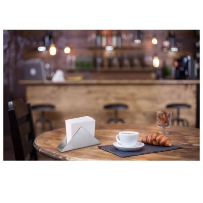 A rozsdamentes acél szalvétatartó 12,5×7×3,3 cm letisztult, háromszög formájával minimalista stílust képvisel.