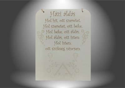 Ez a gravírozott fa házi áldás tábla hagyományos szépséggel áld meg minden otthont. A finoman megmunkált és gravírozott áldás szövege melegséget és vendégszeretetet áraszt, tökéletesen illeszkedve a családias környezetbe. Kiváló minőségű fája természetközeli, rusztikus megjelenést biztosít, ami bármelyik lakásdekorációval harmonizál. A tábla egyszerre spiritualitást és esztétikát hordoz, így helyezd az otthon központi részére, hogy minden vendég érezhesse a barátságos fogadtatást. Különleges ajándék lehet esküvőkre, házavatókra vagy bármilyen alkalomra, hogy békét és áldást vigyen bárhová.