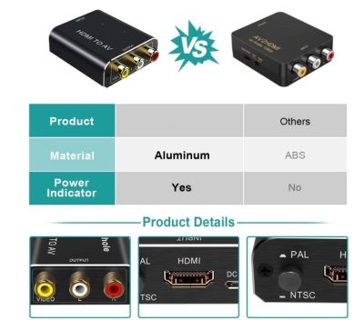 Hdmi av rca átalakitó konverter adapter fém álapot jelzővel