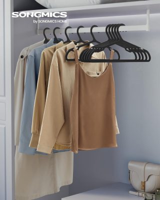 Fedezze fel a SONGMICS vállfák robusztus tartósságát. Vékony, 0,16 hüvelykes profiljuk ellenére ezek a műanyag akasztók egyenként akár 11 fontot is elbírnak. A terjedelmes pulóverektől a téli kabátokig ezeket a vállfákat úgy tervezték, hogy bírják a súlyt, miközben gardróbját rendezetten és stílusosan tartják.