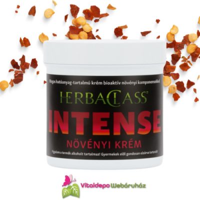 A HerbaClass INTENSE növényi krém aktív növényi komponenseit öt növény felhasználásával készítettük. A hozzá adagolt olajok és a metil-szalicilát (Fajd-bogyó olaj) mind azt a célt szolgálják, hogy a készítmény hatékonyan tudjon segíteni a kialakult problémákon. Kellemesen melegít, nyugtat, s enyhe vérbőséget okozva regenerál. A benne található kivonatok értékét, többek között az igen értékes antioxidáns vegyületek, mint például a telítetlen zsírsavak adják. A gyártás során mindvégig ügyeltek a gyártók arra, hogy a növény összetevők hatóanyagainak teljes skáláját biztosítsák a használónak.