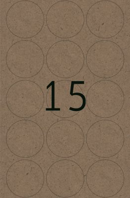 Herma 32 mm átmérőjű környezetbarát, natúr barna színű, matt felületű, kézzel írható öntapadós jelölő címke, permanens ragasztóval, körcímke. A környezeti terhelés csökkentéséért a címkepapírt természetes rost szerkezetű alapanyag felhasználásával állítják elő. Egy csomagban 24 darab 111 x 170 mm-es lapon összesen 360 darab (laponként 15 darab), külön-külön leválasztható, natúr barna színű jelölő címke található.