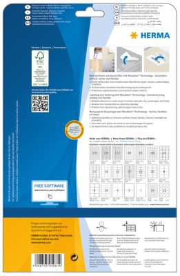 A Herma nyomtatható öntapadós címkéi kompatibilisek az általánosan forgalomban lévő irodai nyomtatókkal. Négy papírmentes lapszéllel rendelkezik, mely ragasztómentes terület biztosítja, hogy nyomtatás közben ne kerülhessen ragasztómaradvány és egyéb szennyező anyag a nyomtató hengereire, görgőire, dobegységére. Így elkerülhetővé válik a címkék feltapadása a nyomtató belső alkatrészeire.