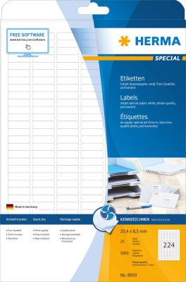 • Herma No. 8830 tintasugaras 25,4 x 8,5 mm méretű, fehér öntapadós etikett címke A4-es íven - 5600 etikett címke / csomag - 25 ív / csomag (Herma 8830)