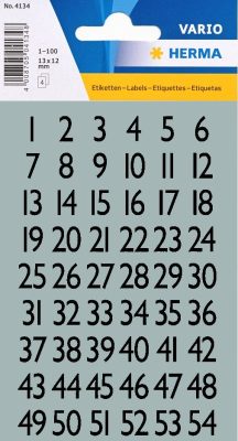 • Herma Vario No. 4134 fekete színű, 9 mm magasságú, öntapadó számok, ezüst színű fólián, karakterek: 1-100 - kiszerelés: 4 ív / csomag (Herma No. 4134)