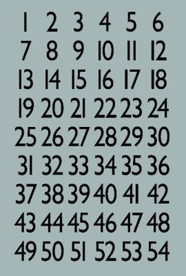 Karakterek: számok 1-tól 100-ig.