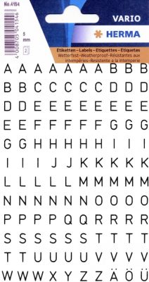 • Herma Vario No. 4154 fekete színű, 5 mm magasságú, időjárásálló öntapadó betűk, karakterek: A-Z - kiszerelés: 2 ív / csomag (Herma No. 4154)