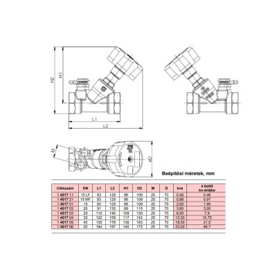 Ferde ülékű szabályozószelep rézötvötzetből, valamennyi vízzel érintkező fémes alkatrész korrózióálló rézötvözetből készült. A felsőrészek nem emelkedő orsóval vannak felszerelve. A szelep mérőbetéttel van felszerelve a nyomáskülönbség méréséhez ferde ülékű kivitelben, mérőszelepekkel. Sárga kivitel korrózióálló sárgarézből, karmantyú x karmantyú, orsótömítésként dupla O gyűrű szolgál, az előbeállítás a szelepemelkedés behatárolásával lehetséges, az előbeállítási fokozat digitális kijelzése a kézi kerék ablakában.