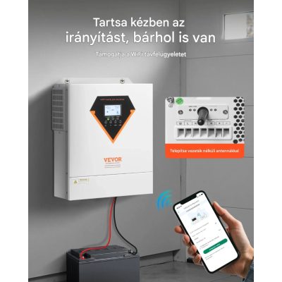 • Hibrid napelemes inverter 48V 230V rendszerhez 6000W teljesítménnyel, 120A MPPT töltésvezérlővel, tiszta szinuszú, off-grid rendszerhez