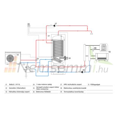 • Recirkulációs csatlakozás a meleg víz azonnali elérhetőségéhez