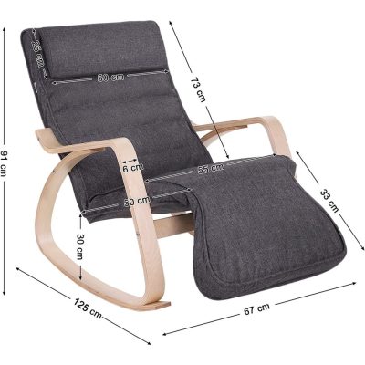 hintaszék 5 irányban állítható lábtartóval, pihenőszék, teherbírása 150 kg, nyírfa váz, vászonutánzat, sötétszürke