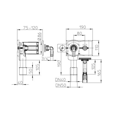 • HL 405 rejtett mosógép szifon beépített víz csatlakozóval, DN40/50