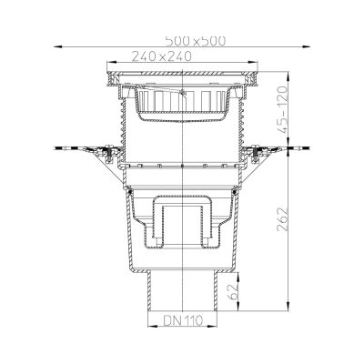 • HL 616HSW/1 Perfekt kültéri víznyelő függőleges kifolyóval és gallérral, DN110, 244 x 244 mm