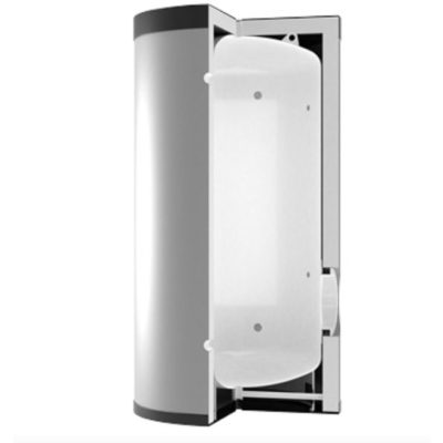 Álló kivitelű HMV tároló, POLYWARM® belső bevonattal, hőcserélő nélküli, puha műgyapjú hőszigetelése levehető és tűzálló, ami 100%-ig újrahasznosított anyagokból készült.