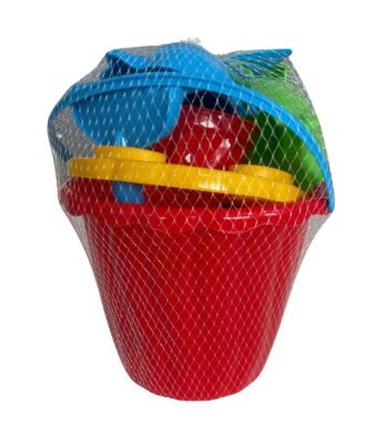 Homokozó vödör kiegészítőkkel és vitorlás lapáttal - piros színben